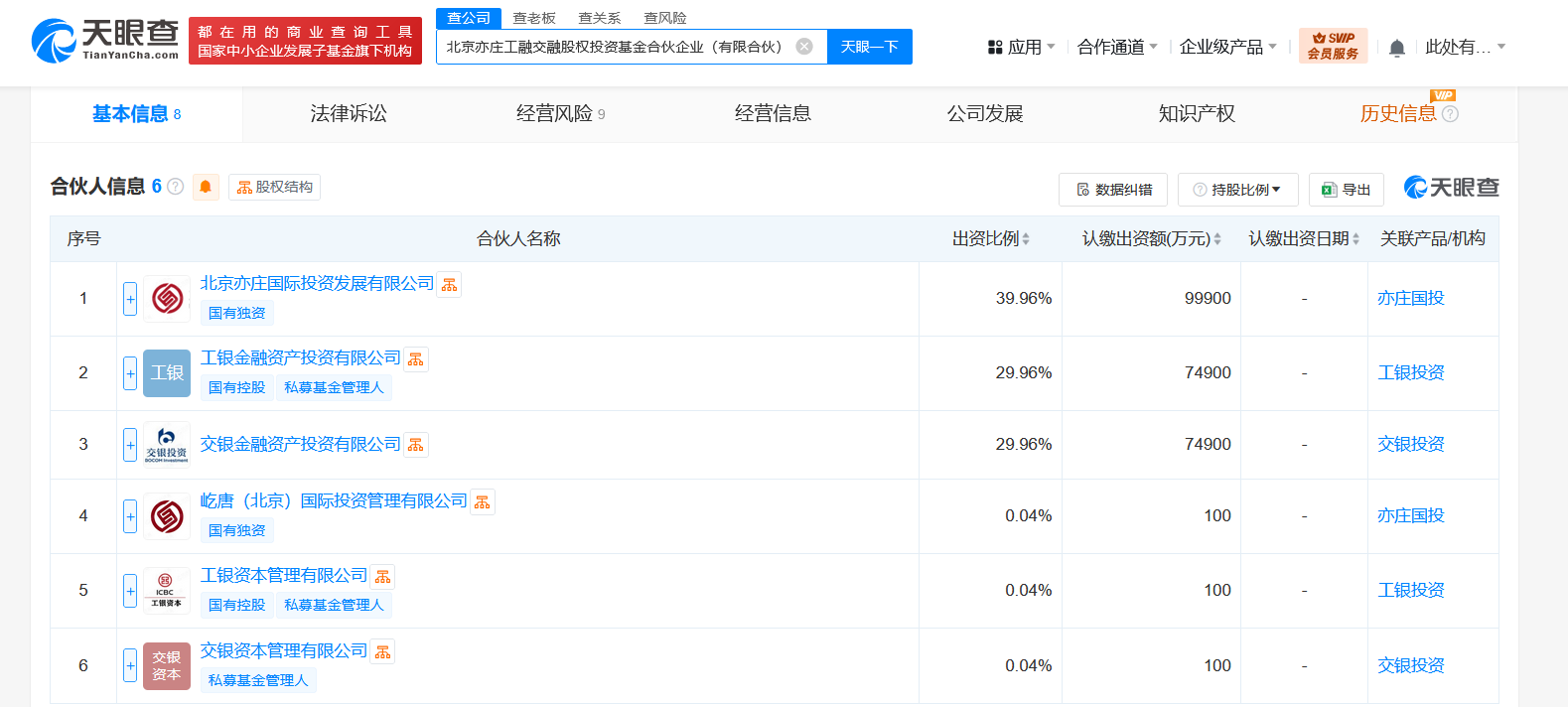 工银投资、交银投资等在北京亦庄成立股权基金 出资额25亿