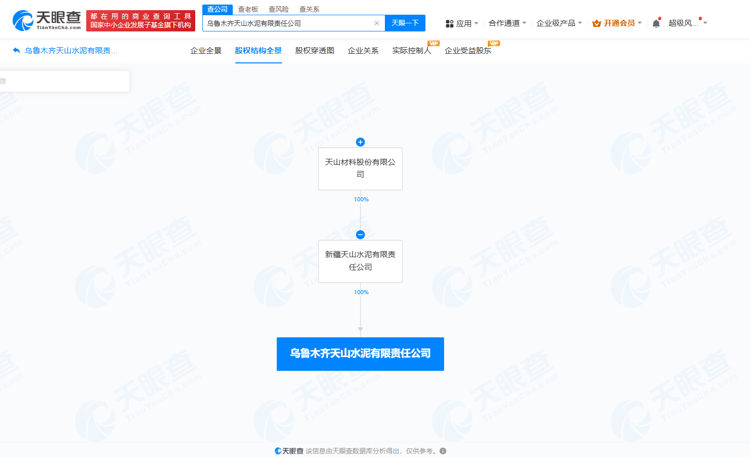 南方财经4月11日电,天眼查App显示,近日,乌鲁木齐天山水泥有限责任公司成立,法定代表人为李永春,注册资本1亿人民币,经营范围包括水泥生产、非煤矿山矿产资源开采、食品销售、餐饮服务等。股权全景穿透图显示,该公司由天山股份(000877)旗下新疆天山水泥有限责任公司全资持股。