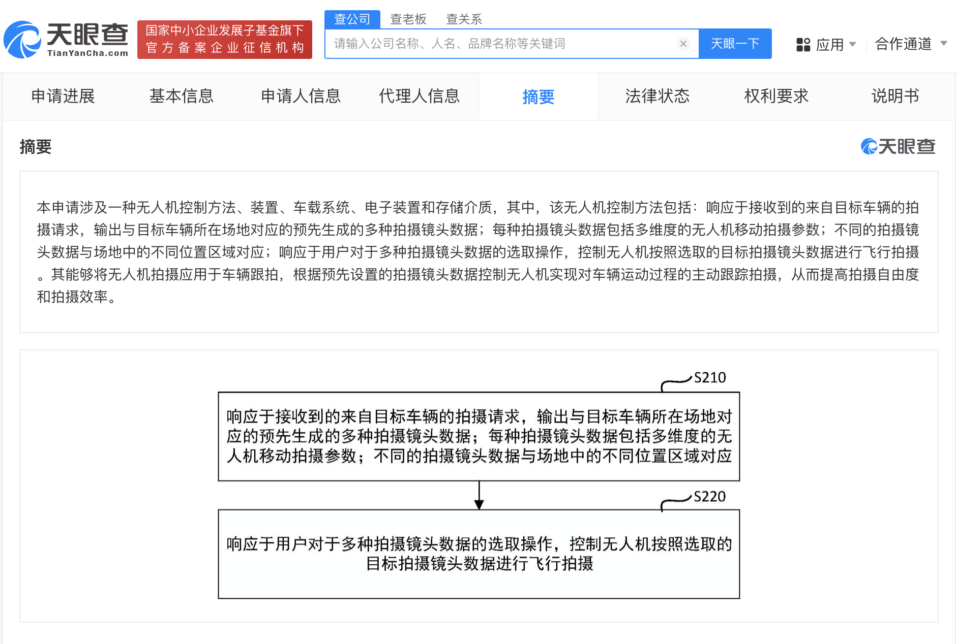南方财经12月11日电,天眼查知识产权信息显示,近日,浙江吉利控股集团有限公司、浙江极氪智能科技有限公司申请的“无人机控制方法、装置、车载系统、电子装置和存储介质”专利公布。摘要显示,该无人机控制方法包括:响应于接收到的来自目标车辆的拍摄请求,输出与目标车辆所在场地对应的预先生成的多种拍摄镜头数据;每种拍摄镜头数据包括多维度的无人机移动拍摄参数;不同的拍摄镜头数据与场地中的不同位置区域对应;响应于用户对于多种拍摄镜头数据的选取操作,控制无人机按照选取的目标拍摄镜头数据进行飞行拍摄。其能够将无人机拍摄应用于车辆跟拍,根据预先设置的拍摄镜头数据控制无人机实现对车辆运动过程的主动跟踪拍摄,从而提高拍摄自由度和拍摄效率。