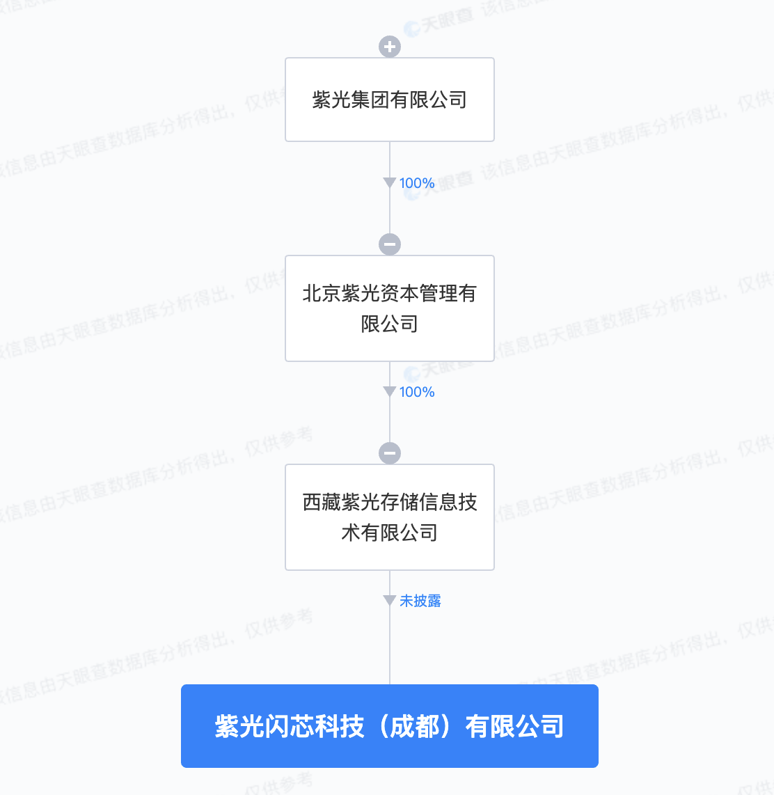 南方财经2月26日电,天眼查App显示,近日,紫光闪芯科技(成都)有限公司成立,法定代表人为张新宇,注册资本1亿元人民币,经营范围含集成电路芯片设计及服务、软件开发、数据处理和存储支持服务、云计算设备销售、货物进出口等。股权全景穿透图显示,该公司由紫光集团旗下西藏紫光存储信息技术有限公司全资持股。