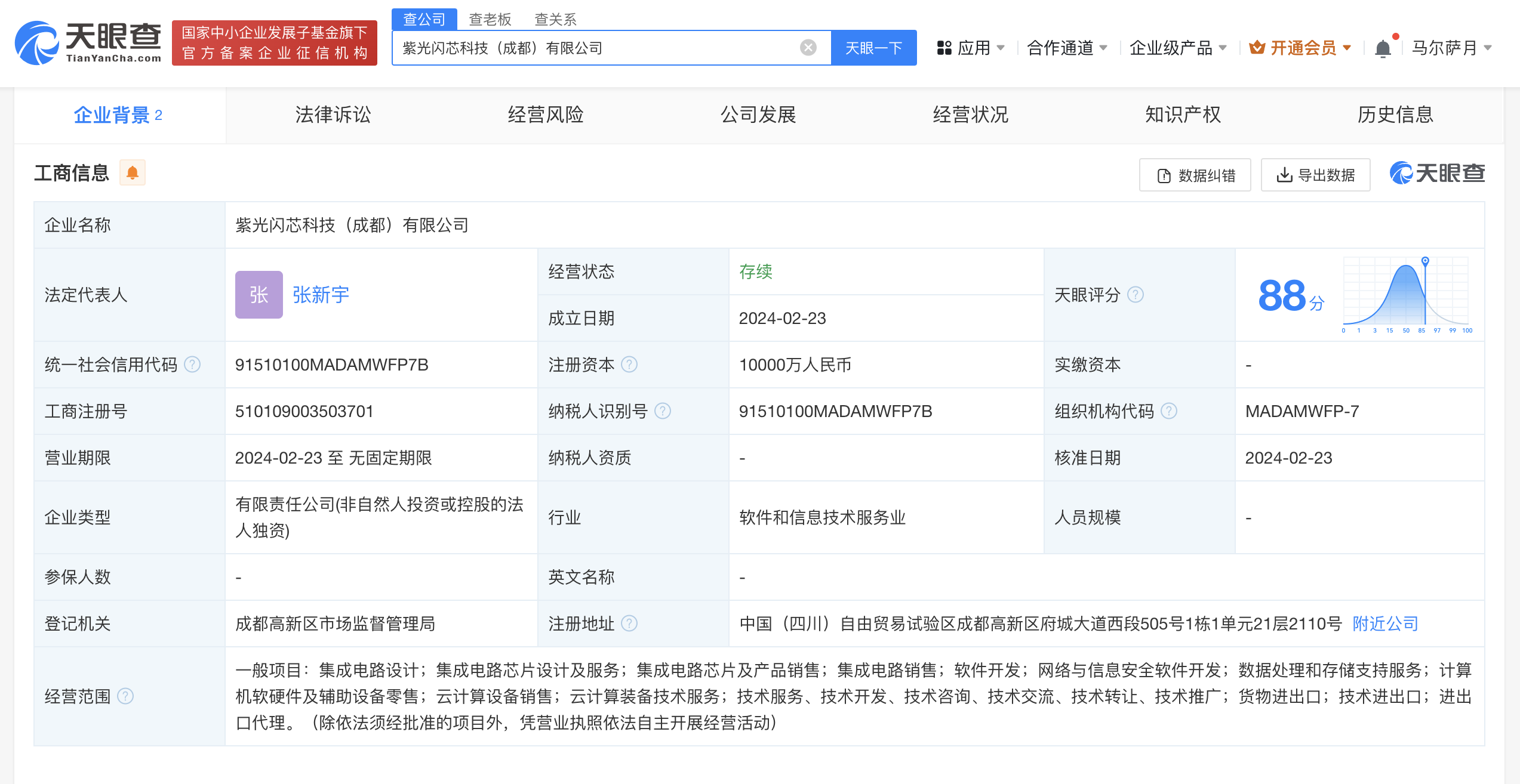 紫光集团在成都成立闪芯科技公司 注册资本1亿元