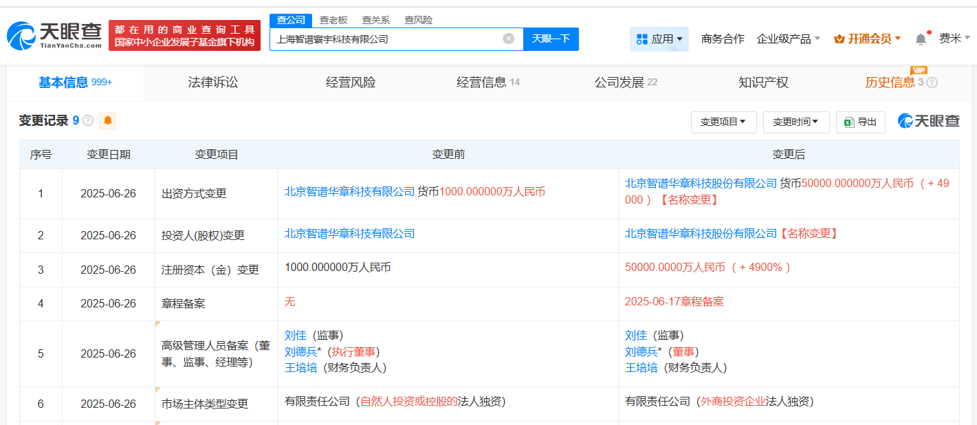 智谱AI旗下上海智谱寰宇科技公司增资至5亿