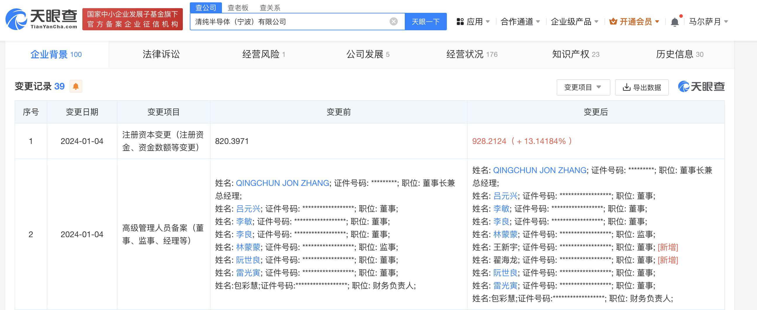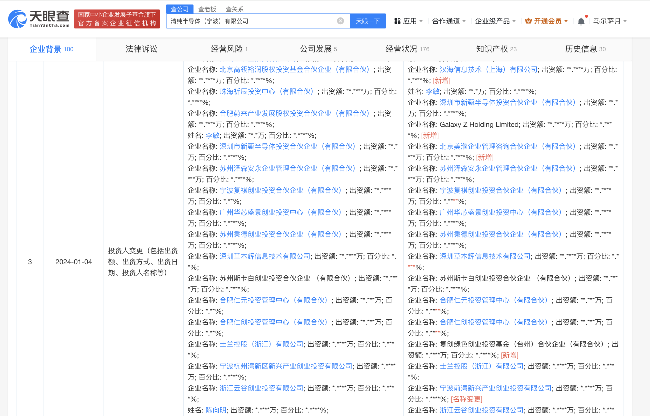 南方财经1月5日电,天眼查App显示,近日,清纯半导体(宁波)有限公司发生工商变更,股东新增美团旗下两家公司汉海信息技术(上海)有限公司、北京美濮企业管理咨询合伙企业(有限合伙)以及Galaxy Z Holding Limited等,注册资本由约820万人民币增至约928万人民币。该公司成立于2021年3月,法定代表人为QINGCHUN JON ZHANG,经营范围含半导体分立器件制造、电力电子元器件制造、集成电路芯片及产品销售等,其股东还包括蔚来旗下合肥蔚来产业发展股权投资合伙企业(有限合伙)、士兰微(600460)等。