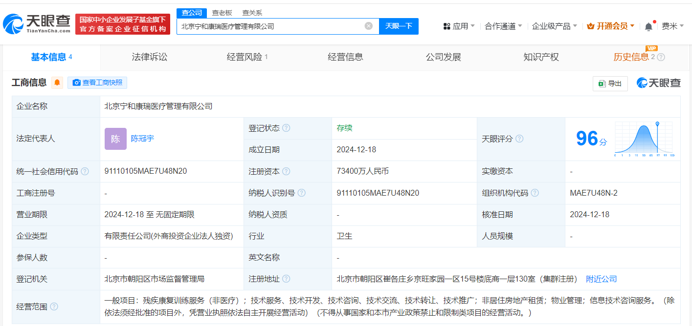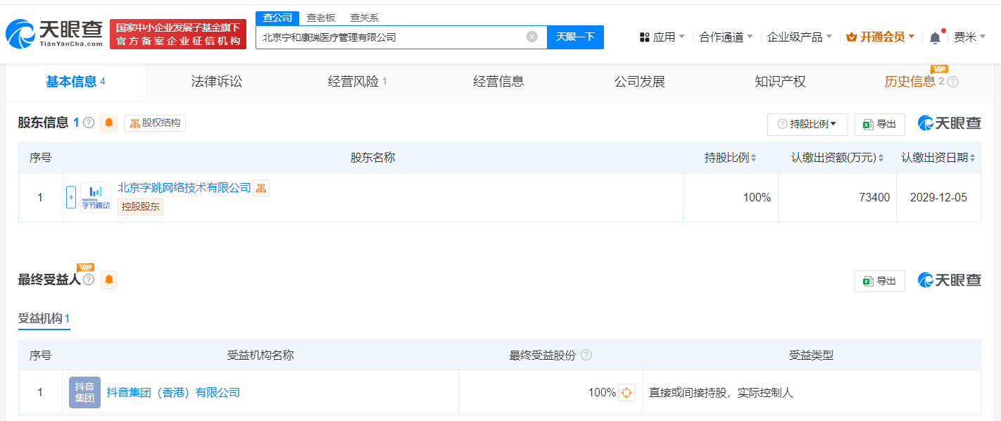 字节跳动成立宁和康瑞医疗管理公司 注册资本7.34亿