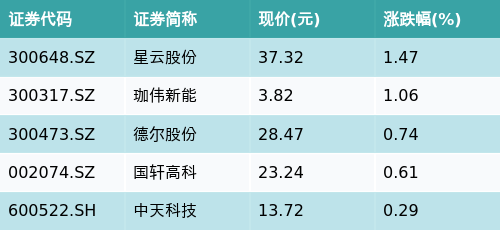 南财智讯5月19日电,天眼查数据显示,今日固态电池主题震荡,截至早盘收盘(下同)下跌0.28%。持有固态电池主题股票的华安创业板50ETF(159949)早盘下跌0.55%,最新价报0.9元。截至上个交易日(5月16日),该基金近五个交易日净值(复权单位净值,下同)上涨1.98%,近一个月净值上涨9.86%。该基金自(20160630)成立以来净值增长率为-9.39%,管理人为华安基金管理有限公司,基金经理为许之彦。截至早盘收盘,固态电池主题涨跌幅最高的五只股票为:星云股份(300648.SZ)、珈伟新能(300317.SZ)、德尔股份(300473.SZ)、国轩高科(002074.SZ)与中天科技(600522.SH)。详情见下表: