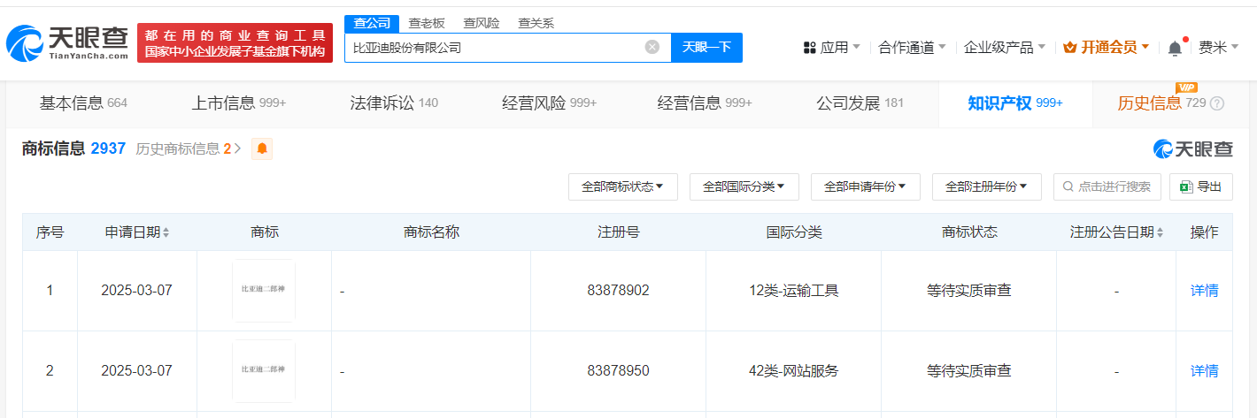 南方财经3月27日电,天眼查知识产权信息显示,近日,比亚迪(002594)申请注册“比亚迪二郎神”商标,国际分类为运输工具、网站服务,当前商标状态为等待实质审查。据媒体报道,近日,比亚迪第二代元PLUS智驾版上市,全系标配天神之眼C - 高阶智驾三目版(DiPilot 100),后者搭载了“二郎神三目”前视摄像头。