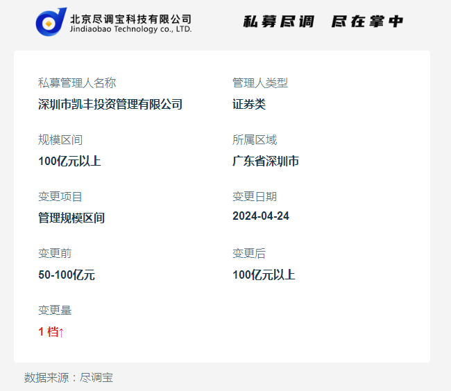 深圳市凯丰投资管理有限公司管理规模上调至100亿元以上