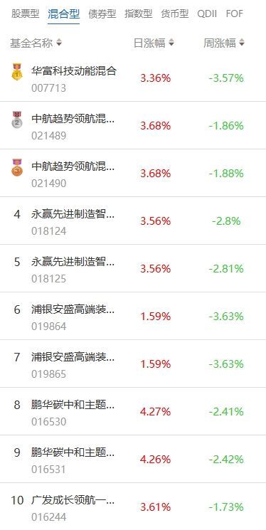 南方财经3月6日电,根据南财基金通数据:2025年03月05日当日收益靠前的混合型基金包括:华富科技动能混合型证券投资基金(007713,日收益3.36%);中航趋势领航混合型发起式证券投资基金(021489,日收益3.68%);永赢先进制造智选混合型发起式证券投资基金(018124,日收益3.56%)等。收益较低的股票型基金包括:中信建投低碳成长混合型证券投资基金(013851,日收益-1.94%);北信瑞丰产业升级多策略混合型证券投资基金(168501,日收益-1.83%);中加医疗创新混合型发起式证券投资基金(016756,日收益-1.56%)等。