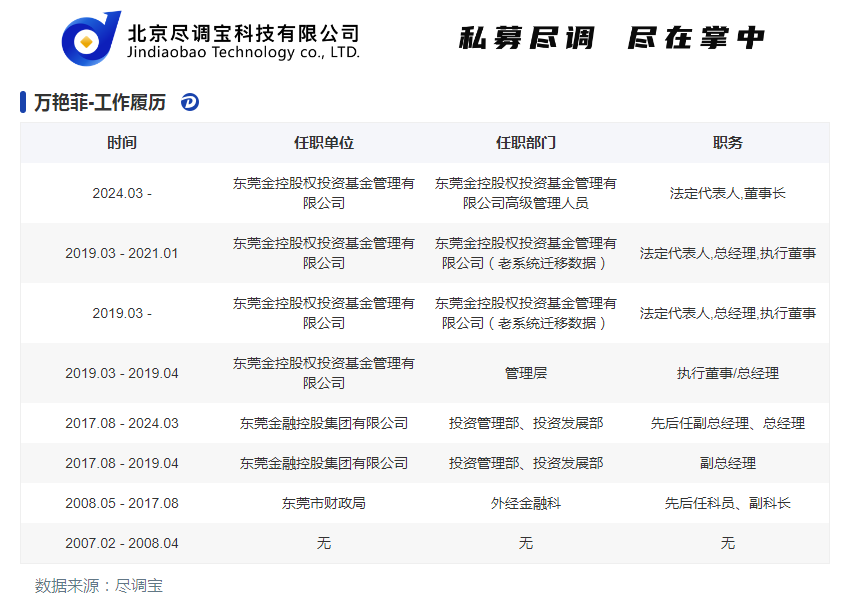 东莞金控股权投资基金管理有限公司高管变更