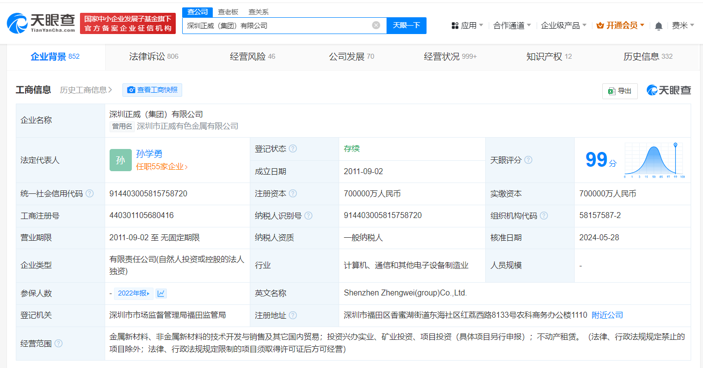 南方财经6月25日电,天眼查法律诉讼信息显示,6月24日,正威控股集团有限公司、深圳正威(集团)有限公司和深圳正威供应链控股有限公司新增一条被执行人信息,执行标的2.34亿余元,执行法院为江苏省南通市中级人民法院。深圳正威(集团)有限公司成立于2011年9月,法定代表人为孙学勇,注册资本70亿人民币,由正威控股集团有限公司全资持股。风险信息显示,该公司现存30余条被执行人信息,被执行总金额超49亿元。