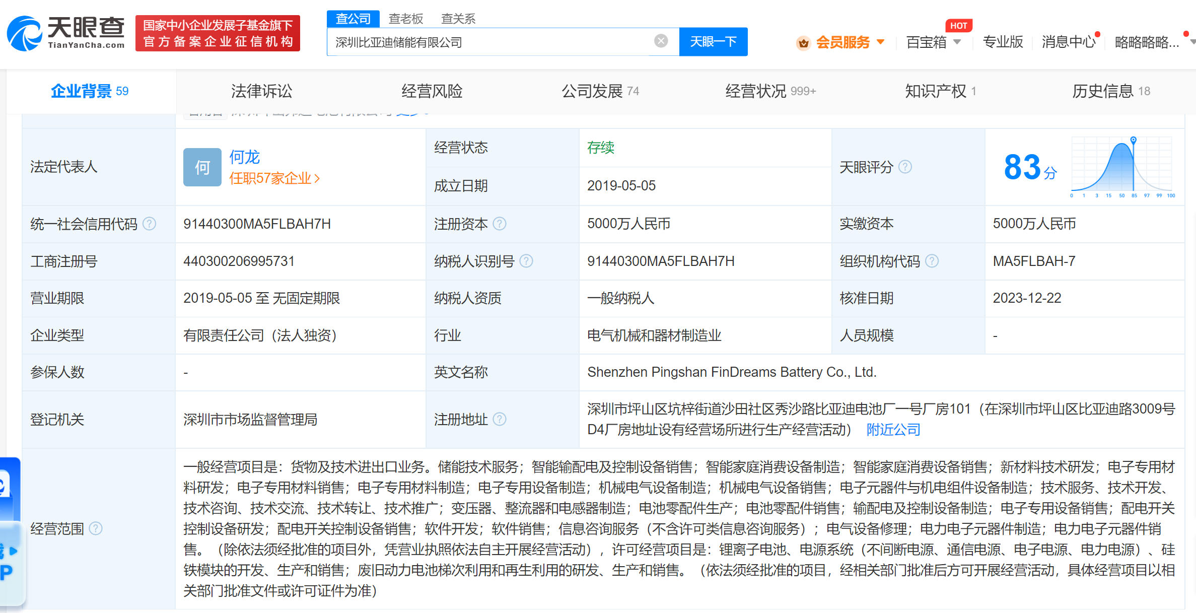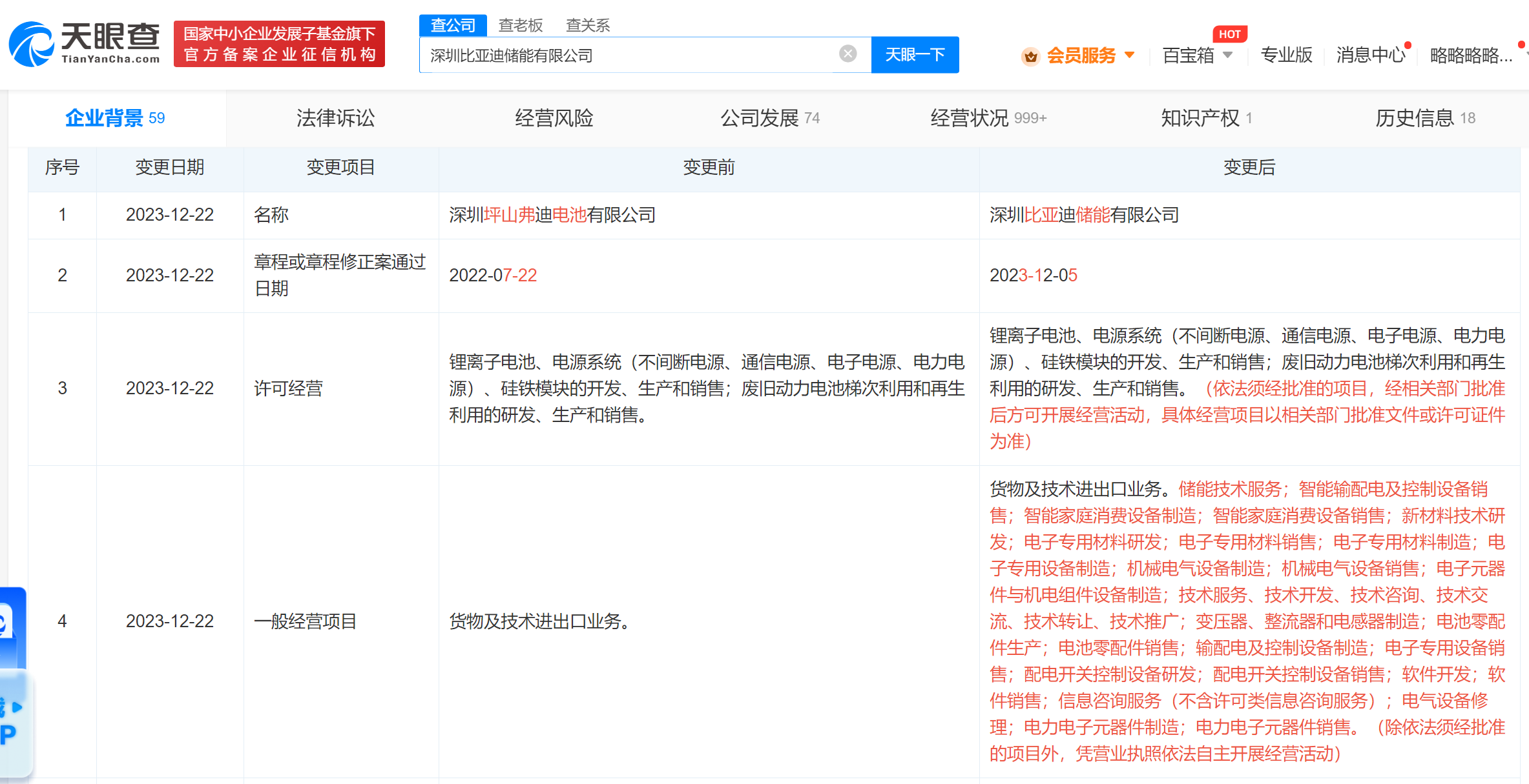 南方财经12月25日电,天眼查App显示,近日,原深圳坪山弗迪电池有限公司发生工商变更,企业名称变更为深圳比亚迪储能有限公司,经营范围新增储能技术服务,智能输配电及控制设备销售,智能家庭消费设备制造、销售等。该公司成立于2019年5月,法定代表人为何龙,注册资本5000万人民币,由比亚迪旗下弗迪电池有限公司全资持股。