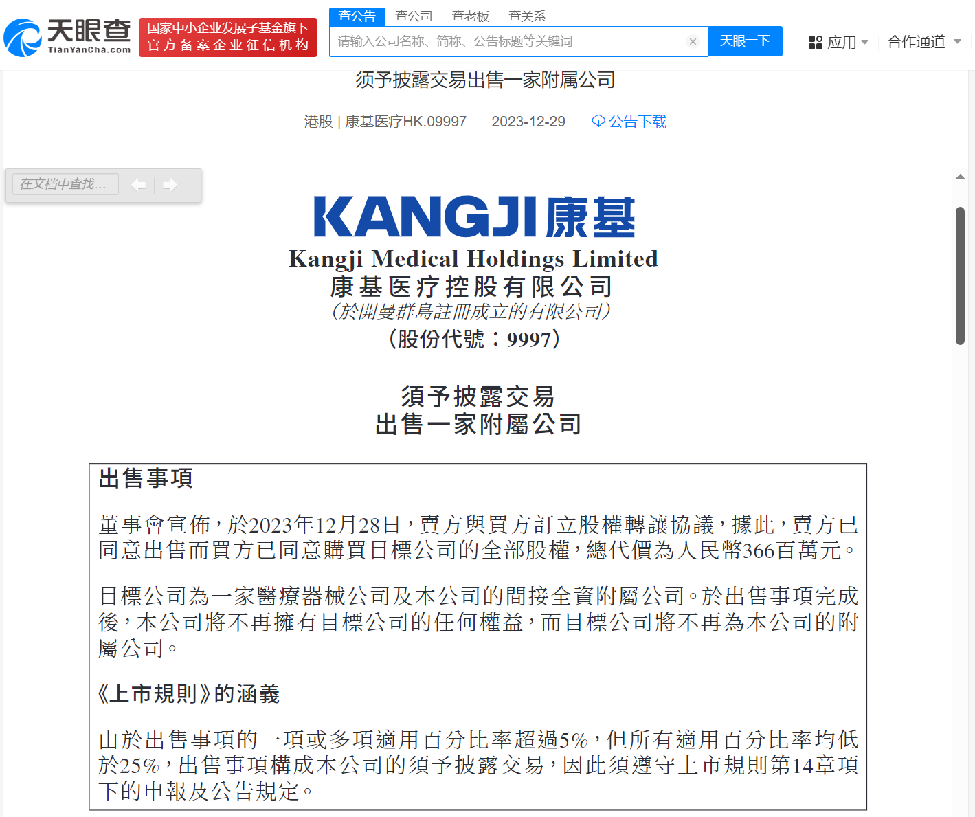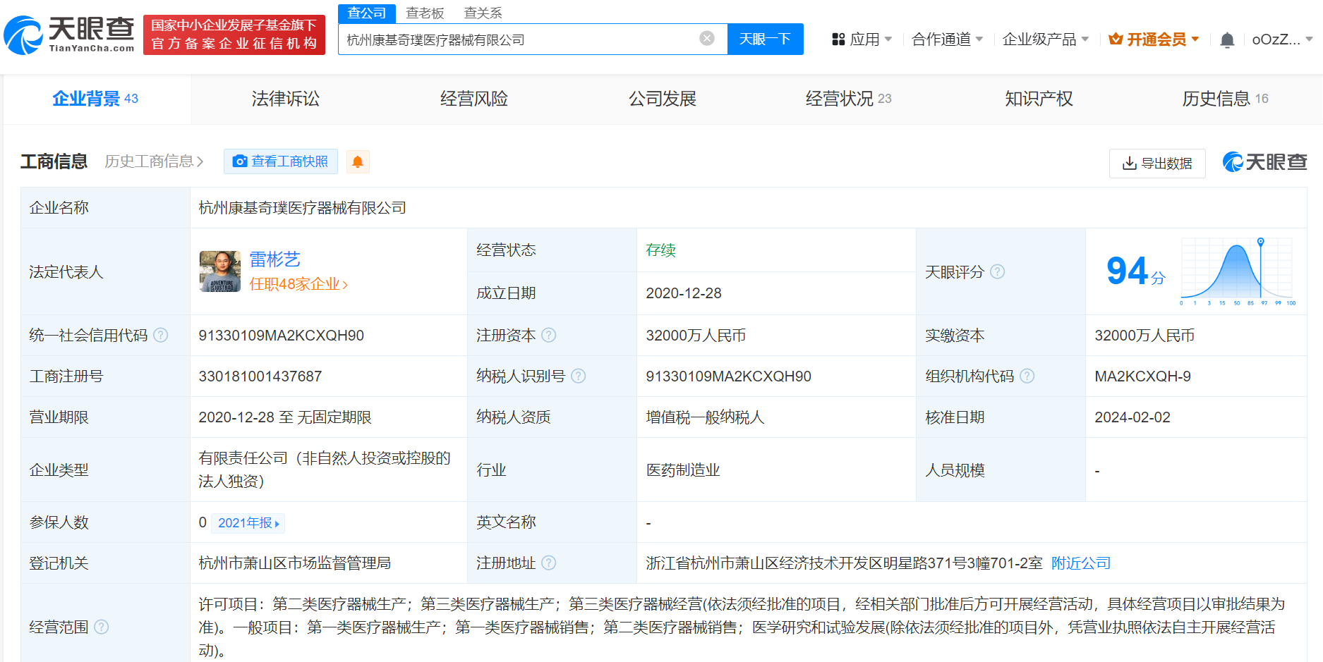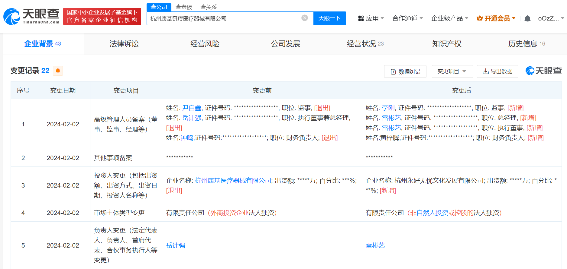 南方财经2月6日电,天眼查App显示,近日,杭州康基奇璞医疗器械有限公司发生工商变更,全资股东杭州康基医疗器械有限公司退出,新增无忧传媒旗下杭州永好无忧文化发展有限公司为全资股东,同时公司主要人员均发生变更,无忧传媒创始人雷彬艺任该公司法定代表人、执行董事、总经理。杭州康基奇璞医疗器械有限公司成立于2020年12月,注册资本3.2亿人民币。去年12月,康基医疗(HK.09997)发布公告称,拟向买方Hangzhou Yonghao Carefree Cultural Development Co., Ltd.出售目标公司Hangzhou Kangji Qipu Medical Instrument Co., Ltd.的全部股权,总代价为3.66亿元。