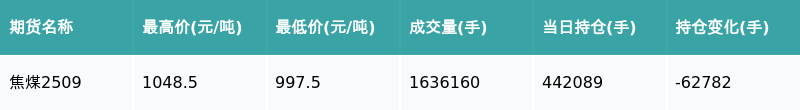 焦煤主力合约收涨7.98%