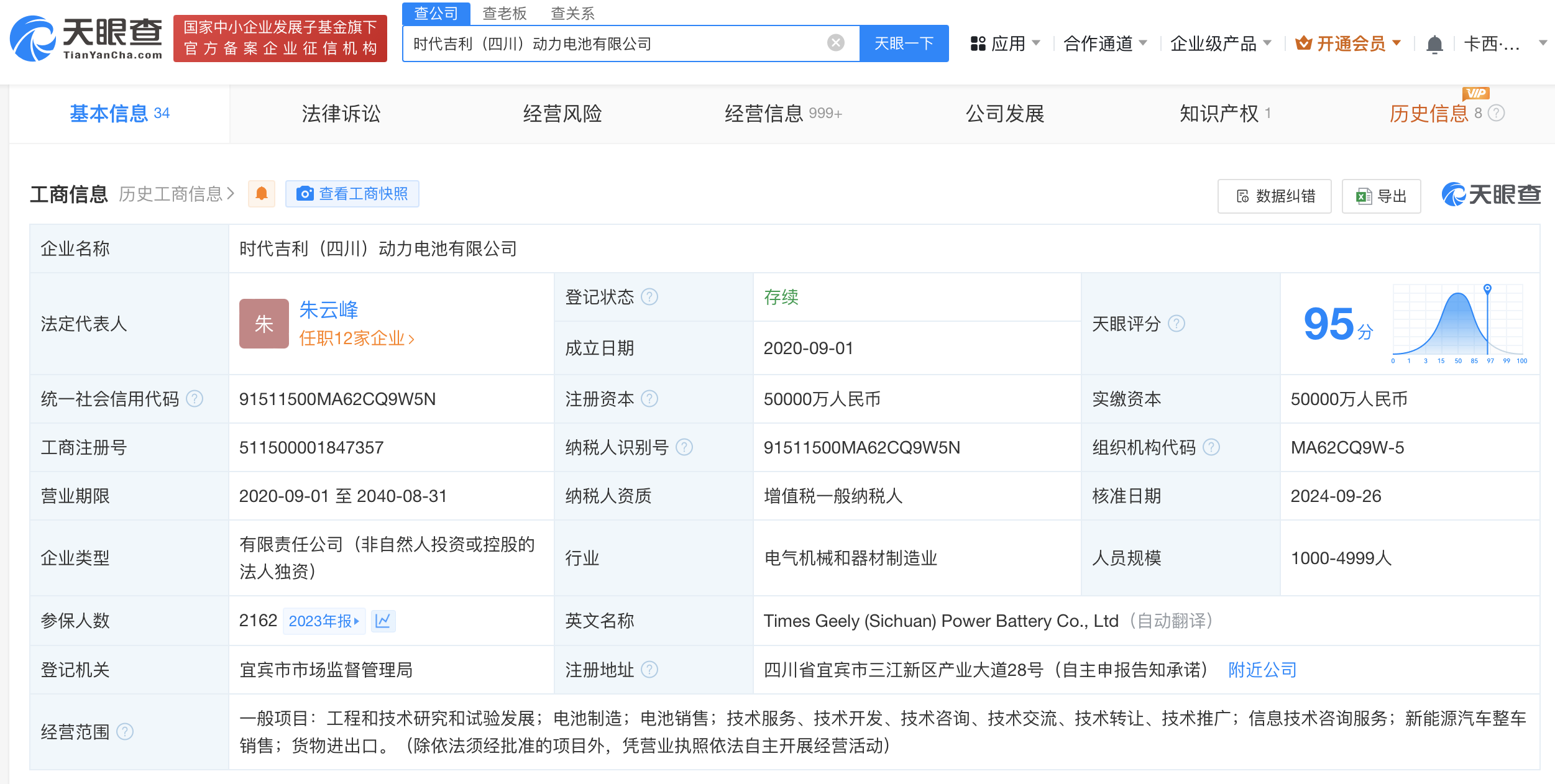 南方财经9月30日电,天眼查App显示,近日,时代吉利(四川)动力电池有限公司发生工商变更,安聪慧卸任法定代表人,由朱云峰接任,新增张华担任监事。时代吉利(四川)动力电池有限公司成立于2020年9月,注册资本5亿人民币,经营范围含电池制造、电池销售、新能源汽车整车销售等,由时代吉利动力电池有限公司全资持股。
