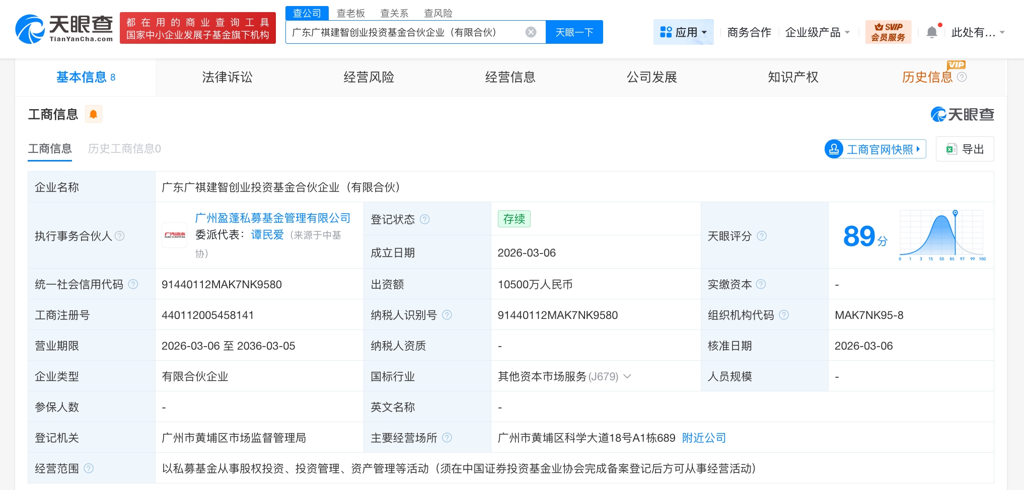 南方财经3月9日电,天眼查工商信息显示,近日,广东广祺建智创业投资基金合伙企业(有限合伙)成立,执行事务合伙人为广州盈蓬私募基金管理有限公司,出资额1.05亿人民币,经营范围为以私募基金从事股权投资、投资管理、资产管理等活动。合伙人信息显示,该基金由广州海智创业投资有限公司、广汽集团(601238)旗下广汽资本有限公司、海智投资(广州)有限公司、广州盈蓬私募基金管理有限公司、广州建智私募基金管理有限公司等共同出资。