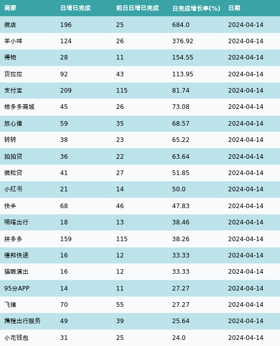 黑猫投诉:微店、羊小咩和得物4月14日投诉完成处理增速最高