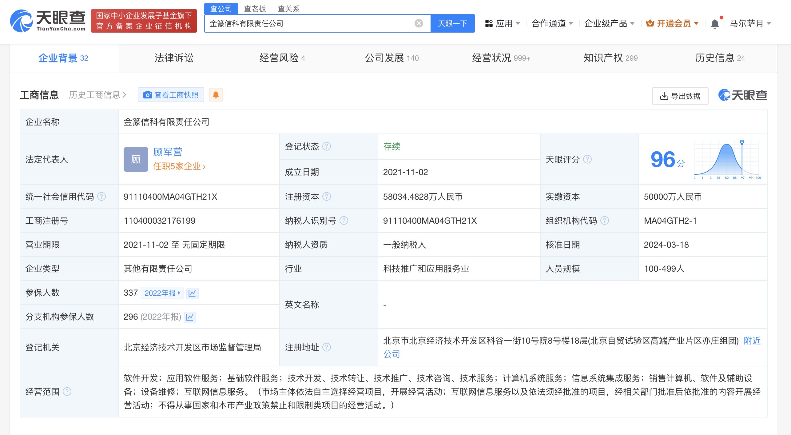 南方财经3月21日电,天眼查企业背景信息显示,近日,金篆信科有限责任公司发生工商变更,股东新增中国移动旗下中移资本控股有限责任公司、中国银行(601988)旗下中银金融资产投资有限公司、建设银行(601939)旗下建信金融资产投资有限公司,同时,公司注册资本由5亿人民币增至约5.8亿人民币。金篆信科有限责任公司成立于2021年11月,法定代表人为顾军营,现由中兴通讯(000063)、南京纯钧创新科技有限公司、中移资本控股有限责任公司等8位股东共同持股。据悉,金篆信科是中兴通讯控股子公司,核心产品为自主可控的分布式关系型数据库软件GoldenDB。不久前,金篆信科获得中国移动、建设银行、中国银行投资。
