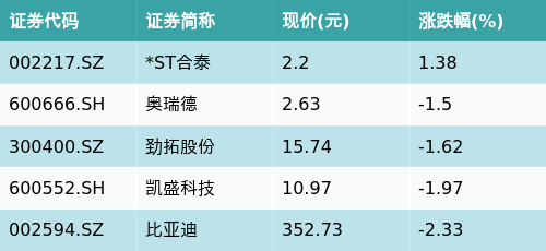 ETF最前线 | 汇添富中证新能源汽车产业ETF(516390)下跌1.82%,3D玻璃主题走弱,*ST合泰上涨1.38%