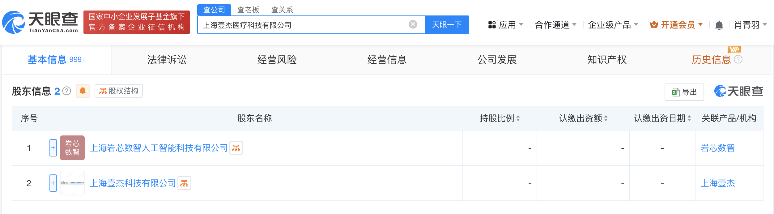 岩芯数智等在上海成立医疗科技公司 注册资本1000万元