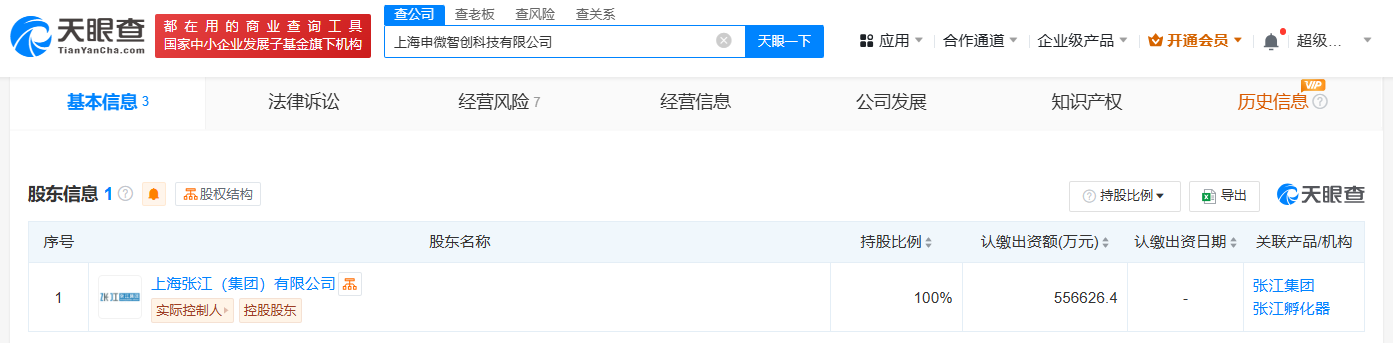 张江集团成立申微智创科技公司 注册资本约55.66亿