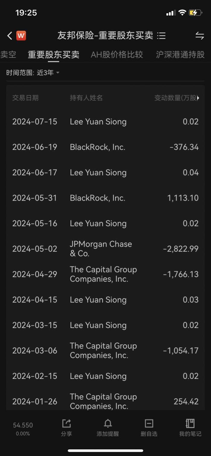 友邦保险集团CEO兼总裁李源祥对公司总持股增至842.54万股