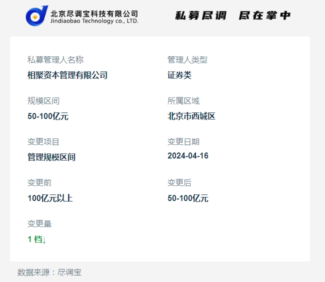 相聚资本管理有限公司管理规模下调至50-100亿元