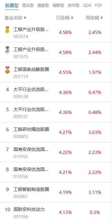 南方财经9月2日电,根据南财基金通数据:2024年8月30日当日收益靠前的股票型基金包括:工银瑞信产业升级股票型证券投资基金(007674,日收益4.58%);工银瑞信国家战略主题股票型证券投资基金(001719,日收益4.55%);太平行业优选股票型证券投资基金(009538,日收益4.36%)等。收益较低的股票型基金包括:东吴医疗服务股票型证券投资基金(013941,日收益-1.12%);信澳蓝筹精选股票型证券投资基金(009988,日收益-1.1%);华夏优势精选股票型证券投资基金(005894,日收益-1.09%)等。