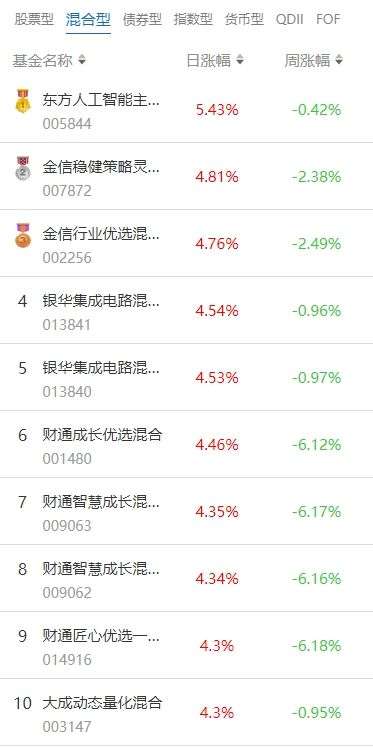 南财基金通·混合型基金收益排行榜(10月24日)