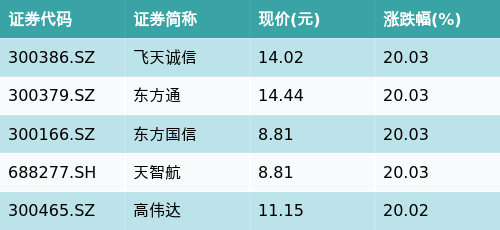 截至收盘,北京主题涨跌幅最高的五只股票为:飞天诚信(300386.SZ)、东方通(300379.SZ)、东方国信(300166.SZ)、天智航(688277.SH)与高伟达(300465.SZ)。详情见下表: