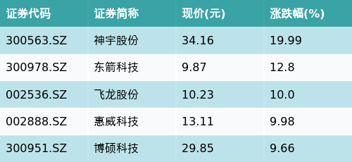 南方财经7月9日电,南财金融终端显示,今日汽车电子概念主题走强,截至午间收盘(下同)上涨2.81%。持有汽车电子概念主题股票的华宝中证科技龙头ETF(515000)早盘上涨1.17%,最新价报1.039元。截至上个交易日(7月8日),该基金近五个交易日净值(复权单位净值,下同)下跌2.9%,近一个月净值下跌4.39%。该基金自(20190722)成立以来净值增长率为2.77%,管理人为华宝基金管理有限公司,基金经理为胡洁。截至午间收盘,汽车电子概念主题涨跌幅最高的五只股票为:神宇股份(300563.SZ)、东箭科技(300978.SZ)、飞龙股份(002536.SZ)、惠威科技(002888.SZ)与博硕科技(300951.SZ)。详情见下表: