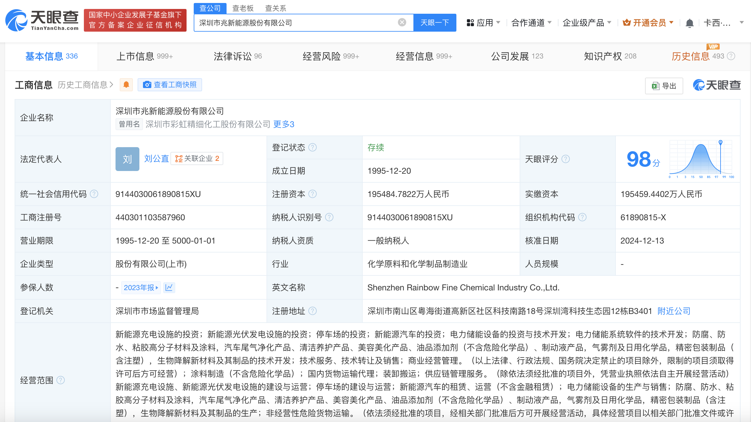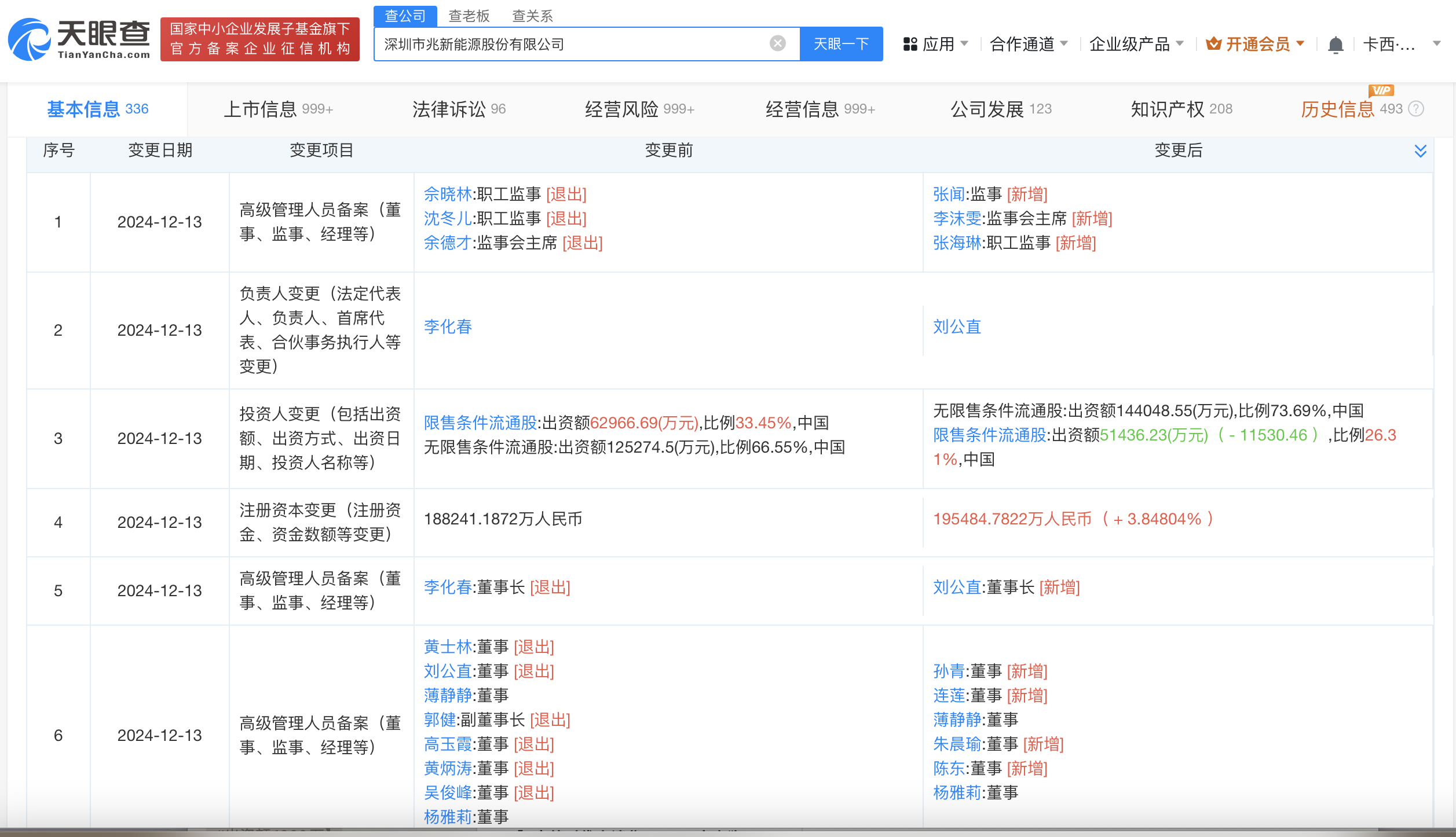 南方财经12月16日电,天眼查App显示,近日,兆新股份(002256)发生工商变更,李化春卸任法定代表人、董事长,由刘公直接任,注册资本由约18.8亿人民币增至约19.5亿人民币,同时多位主要人员均发生变更。深圳市兆新能源股份有限公司成立于1995年12月,由香港中央结算有限公司、深圳市高新投集团有限公司等共同持股。12月9日晚间,兆新股份披露第七届董事会第一次会议决议公告,公司董事会选举刘公直为公司董事长。