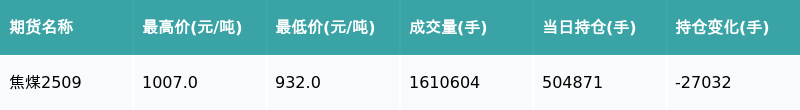 南财智讯7月21日电,南财金融终端盘后期货数据显示,大连商品交易所的焦煤主力合约收涨7.88%,收盘报1006.0元/吨,日内资金流入2.21亿元。其他相关指标见下表: