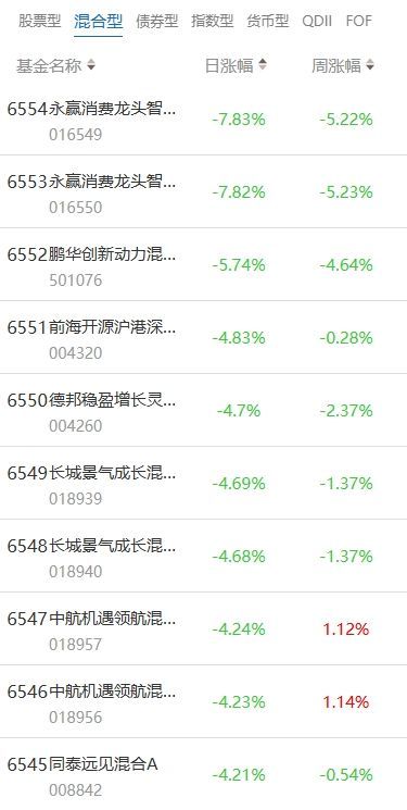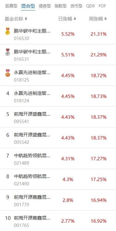 南方财经1月13日电,根据南财基金通数据:2025年01月10日当日收益靠前的混合型基金包括:鹏华碳中和主题混合型证券投资基金(016530,日收益5.52%);永赢先进制造智选混合型发起式证券投资基金(018125,日收益4.45%);前海开源盛鑫灵活配置混合型证券投资基金(005541,日收益4.43%)等。收益较低的股票型基金包括:永赢消费龙头智选混合型发起式证券投资基金(016549,日收益-7.83%);鹏华创新动力灵活配置混合型证券投资基金(LOF)(501076,日收益-5.74%);前海开源沪港深乐享生活灵活配置混合型证券投资基金(004320,日收益-4.83%)等。