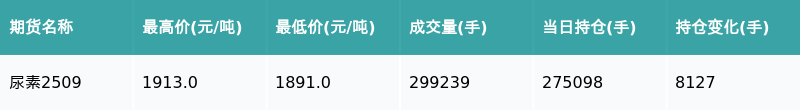 南财智讯5月13日电,南财金融终端盘后期货数据显示,郑州商品交易所的尿素主力合约收涨0.32%,收盘报1897.0元/吨,日内资金流入4933.41万元。其他相关指标见下表: