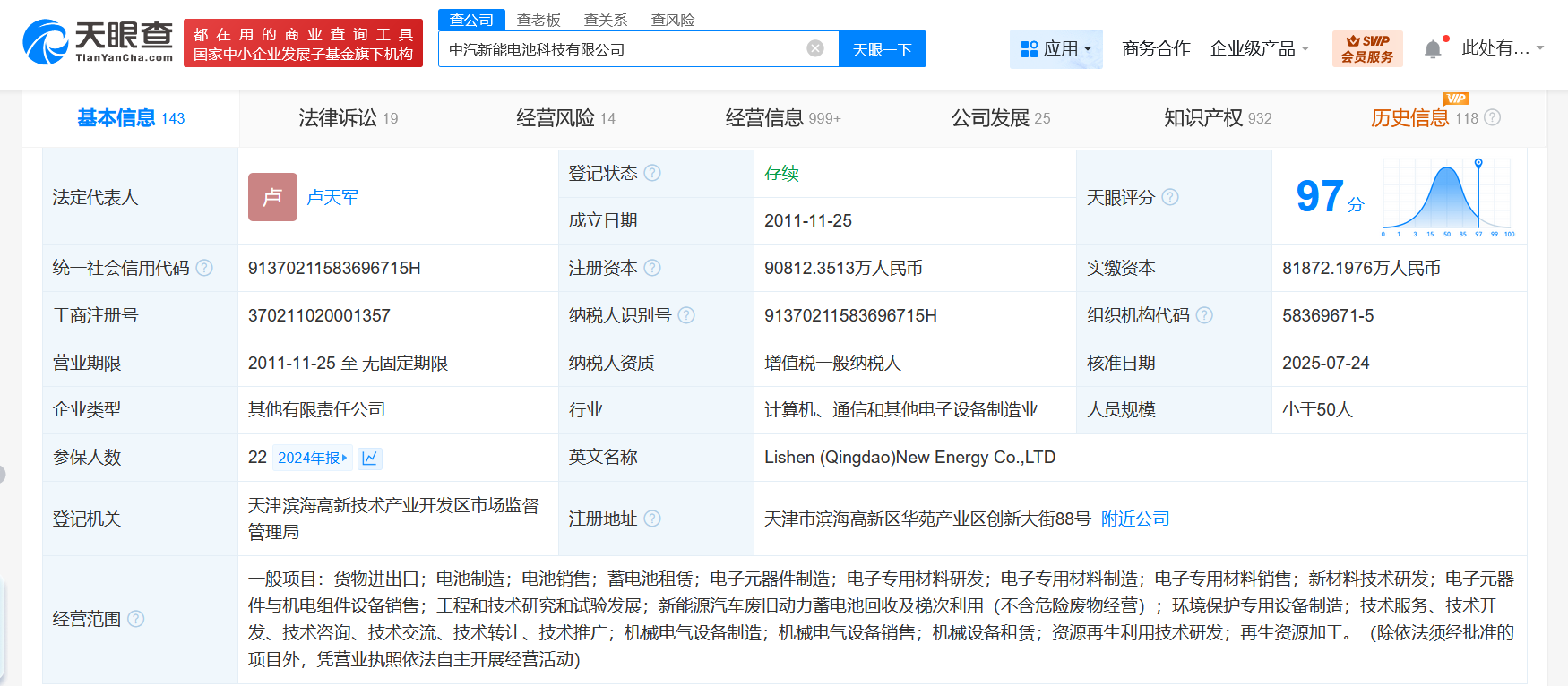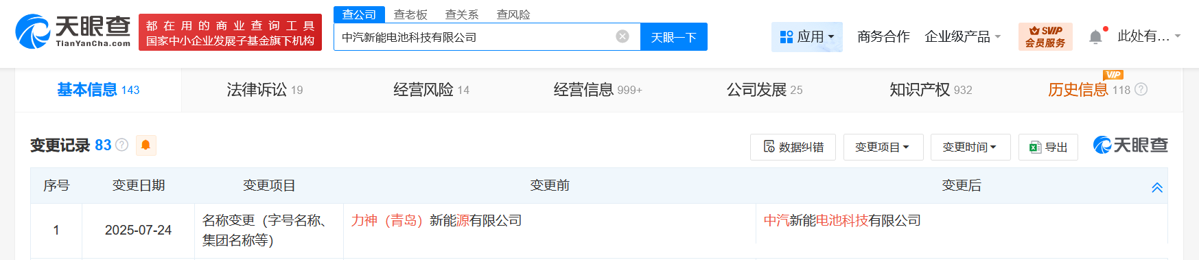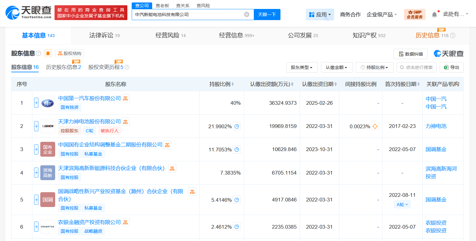南方财经7月28日电,天眼查App显示,近日,力神(青岛)新能源有限公司发生工商变更,企业名称变更为中汽新能电池科技有限公司,新增中国第一汽车股份有限公司、东风资产管理有限公司、长安汽车投资(深圳)有限公司为股东,同时,董事长及多位主要人员均发生变更。中汽新能电池科技有限公司成立于2011年11月,法定代表人为卢天军,注册资本约9.08亿人民币,经营范围含货物进出口、电池制造、电池销售、蓄电池租赁、电子元器件制造、新能源汽车废旧动力蓄电池回收及梯次利用、资源再生利用技术研发、再生资源加工等。股东信息显示,该公司现由中国第一汽车股份有限公司、天津力神电池股份有限公司、中国国有企业结构调整基金二期股份有限公司等共同持股。据媒体此前报道,中国一汽收购力神(青岛)新能源有限公司迎来实质性进展。3月3日,国家市场监管总局发布2025年2月17日-2月23日无条件批准经营者集中案件列表,共有12个案件获批。中国一汽收购青岛力神股权案成为获批的12个案件之一。