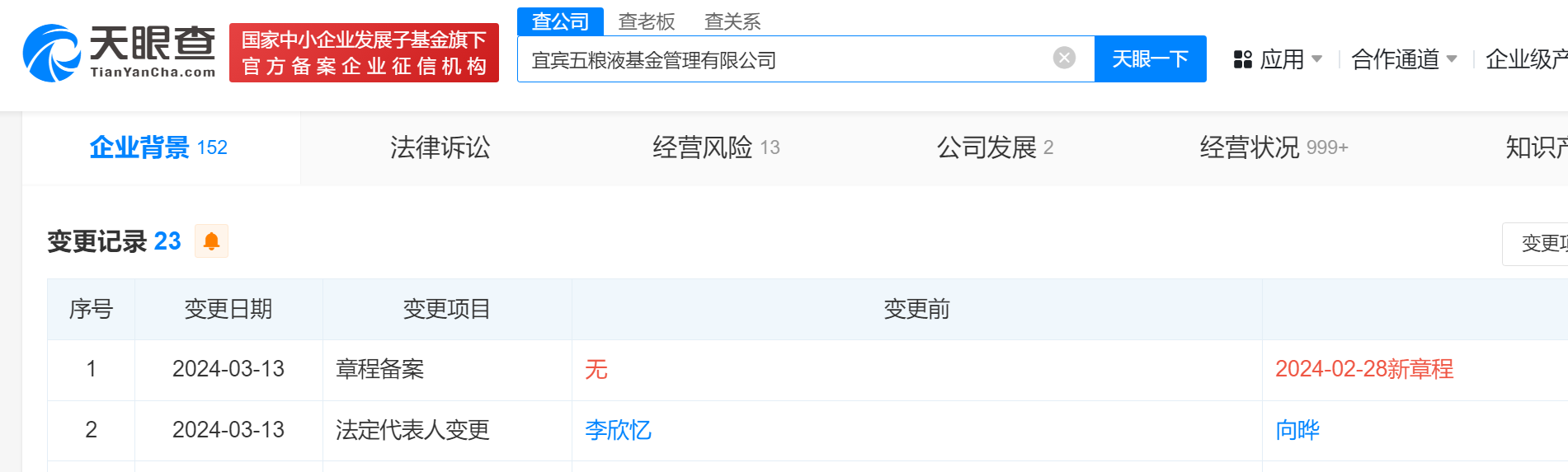 五粮液基金管理公司法定代表人变更