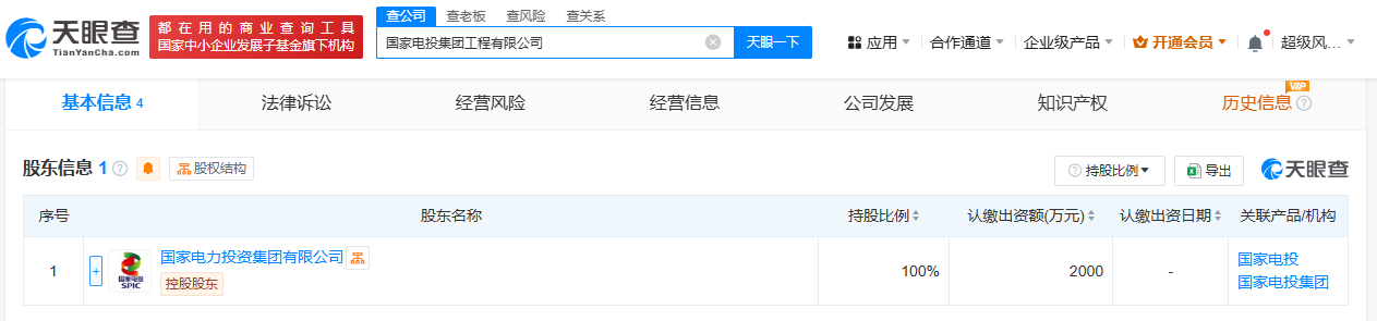 国家电投在上海成立工程公司 注册资本2000万元