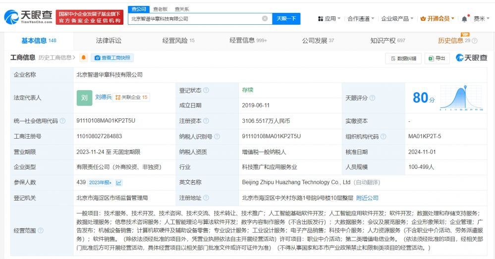南方财经11月4日电,天眼查App显示,近日,智谱AI关联公司北京智谱华章科技有限公司发生工商变更,新增北京市人工智能产业投资基金(有限合伙)、深圳市招商数科创新私募股权投资基金合伙企业(有限合伙)、湖北长江中信科移动通信技术产业投资基金合伙企业(有限合伙)等为股东,同时注册资本由约2791万人民币增至约3107万人民币。