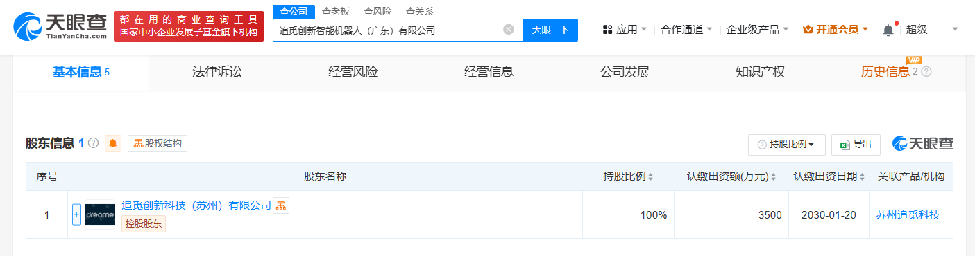追觅科技在广东成立创新智能机器人公司 注册资本3500万