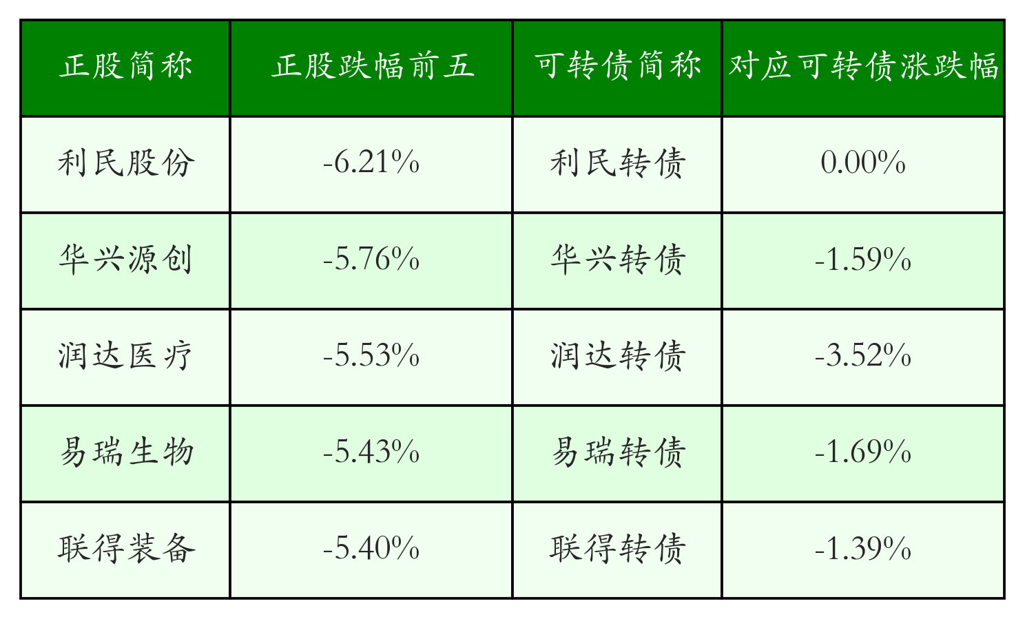 今日有8只可转债对应正股跌幅超过5%,没有正股跌停。