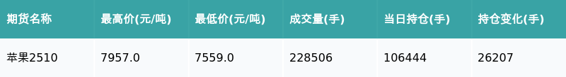 南财智讯4月18日电,南财金融终端盘后期货数据显示,郑州商品交易所的苹果主力合约收跌1.53%,收盘报7674.0元/吨,日内资金流入3.74亿元。其他相关指标见下表: