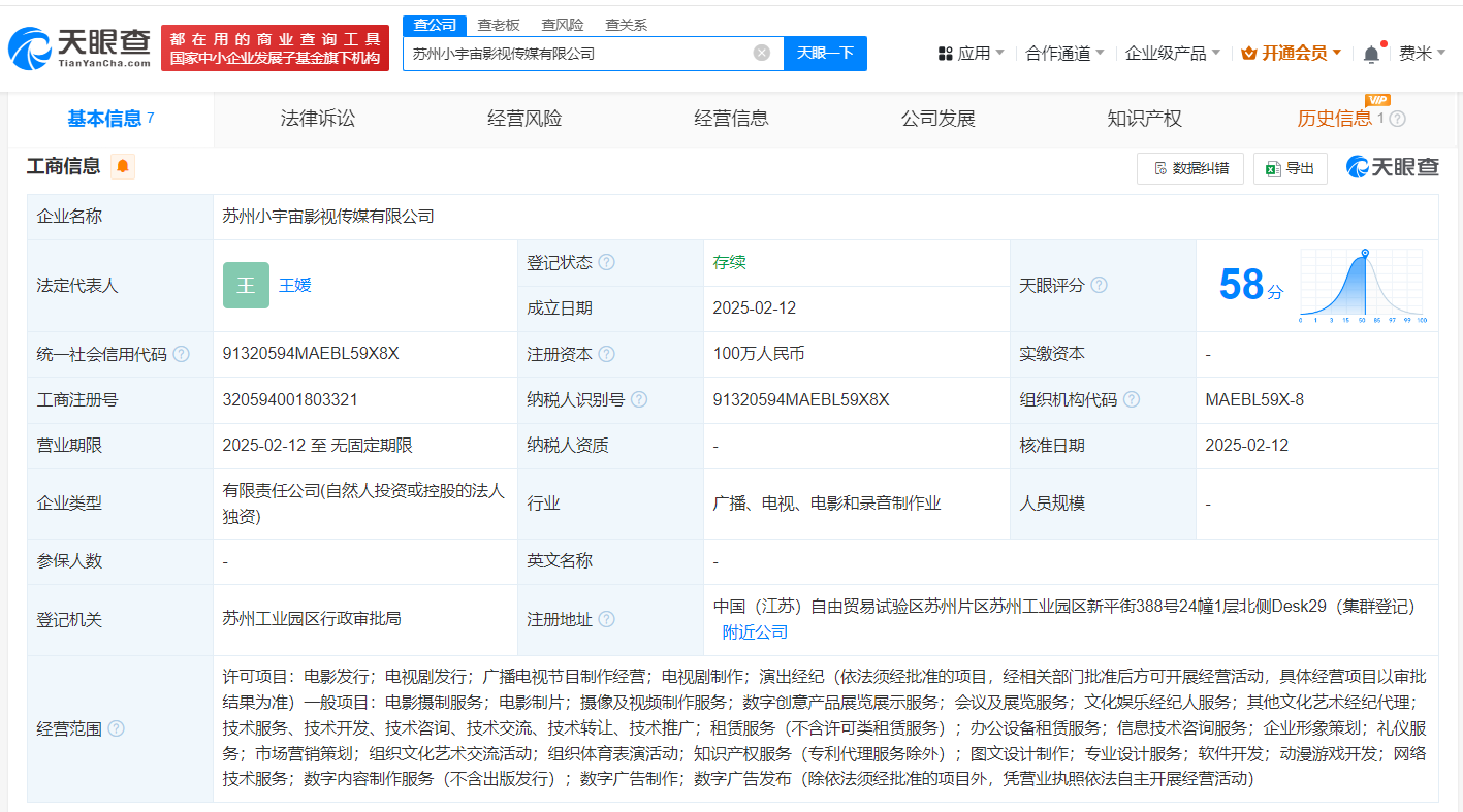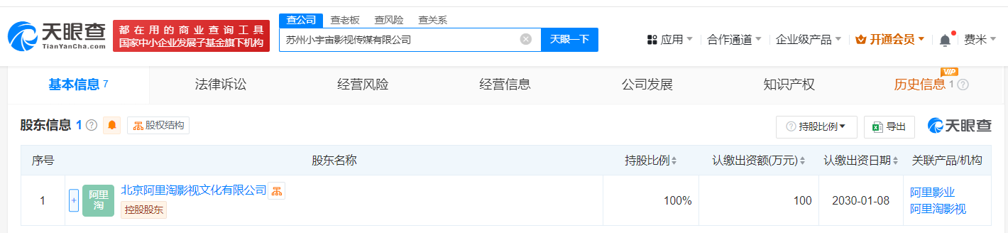 南方财经2月14日电,天眼查App显示,近日,苏州小宇宙影视传媒有限公司成立,法定代表人为王媛,注册资本100万人民币,经营范围含电影发行、电视剧发行、广播电视节目制作经营、电视剧制作、演出经纪等,由阿里影业旗下北京阿里淘影视文化有限公司全资持股。