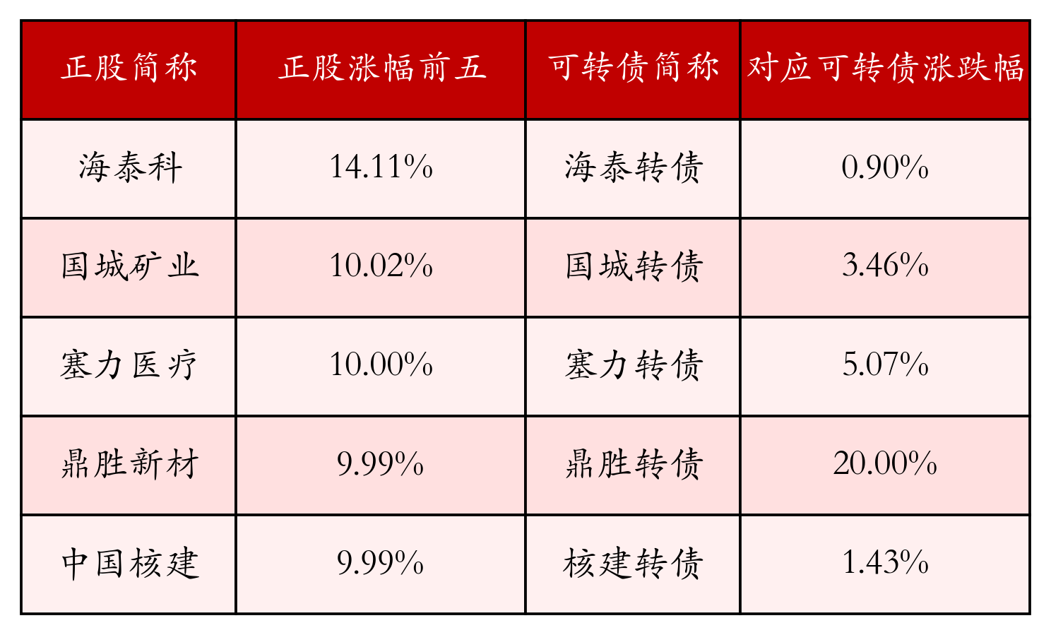 存在交易量的可转债所对应的正股中,303只收涨,16只收平,177只收跌。具体来看,22只可转债对应正股涨幅超过5%,其中,国城矿业(000688)涨停,收涨10.02%; 塞力医疗(603716)涨停,收涨10.0%。同时所对应的可转债:国城转债(127019)同涨3.46%; 塞力转债(113601)同涨5.07%。