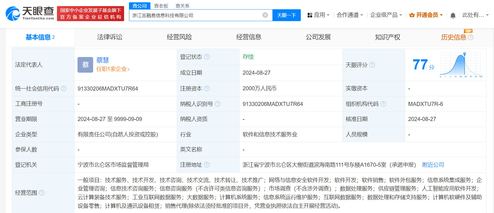 吉利成立吉融易信息科技公司 注册资本2000万