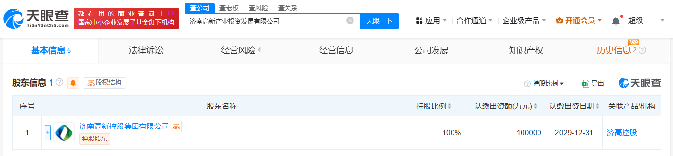 济南高新控股集团成立产业投资发展公司 注册资本10亿