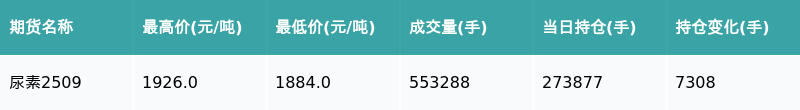 南财智讯5月9日电,南财金融终端盘后期货数据显示,郑州商品交易所的尿素主力合约收涨1.01%,收盘报1893.0元/吨,日内资金流入5365.22万元。其他相关指标见下表: