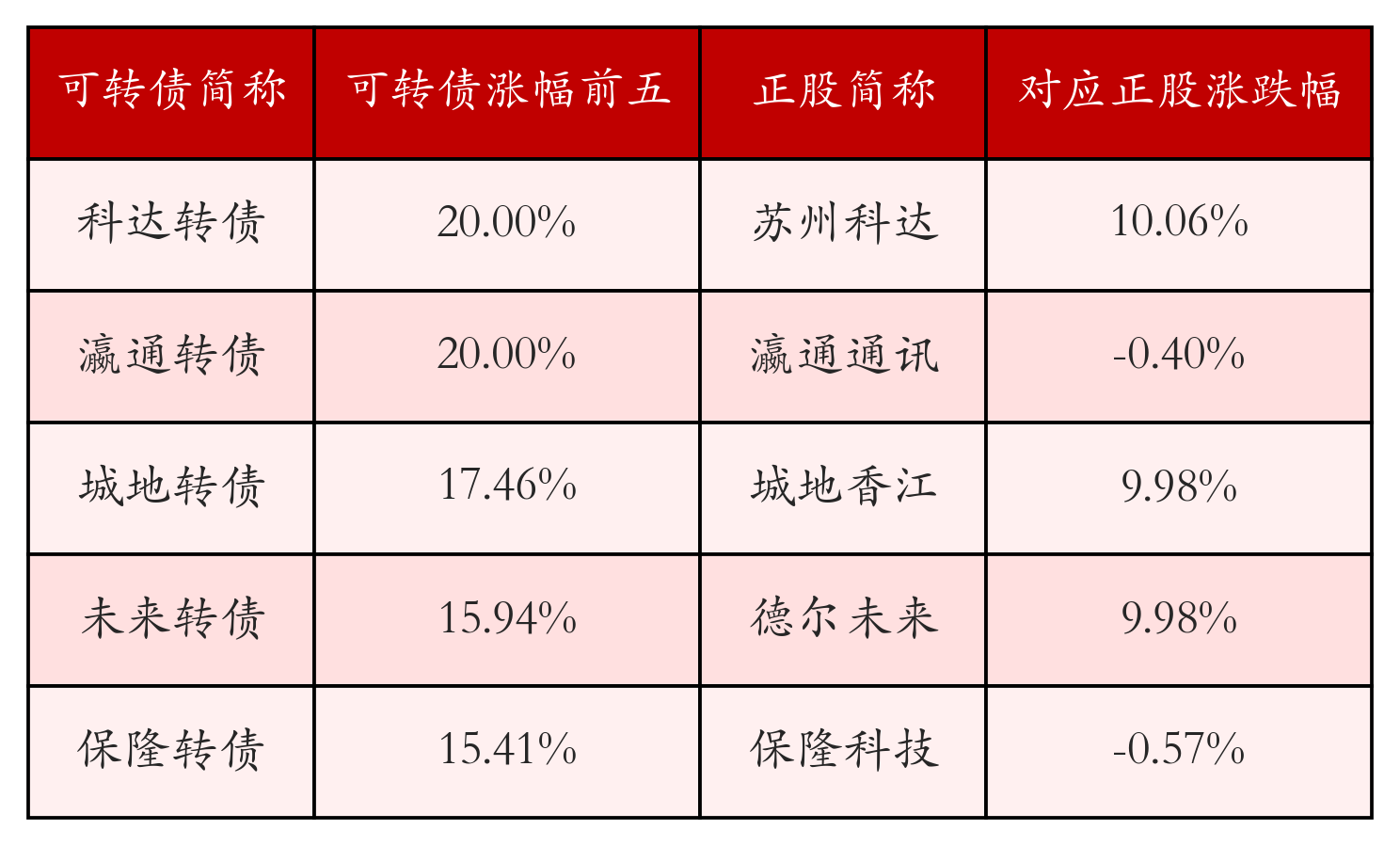 可转债方面,今日共成交530只可转债,其中452只收涨,2只收平,76只收跌。具体来看,57只可转债涨幅超过2%。其中科达转债 (113569)涨20.0%,瀛通转债 (128118)涨20.0%,城地转债 (113596)涨17.46%。