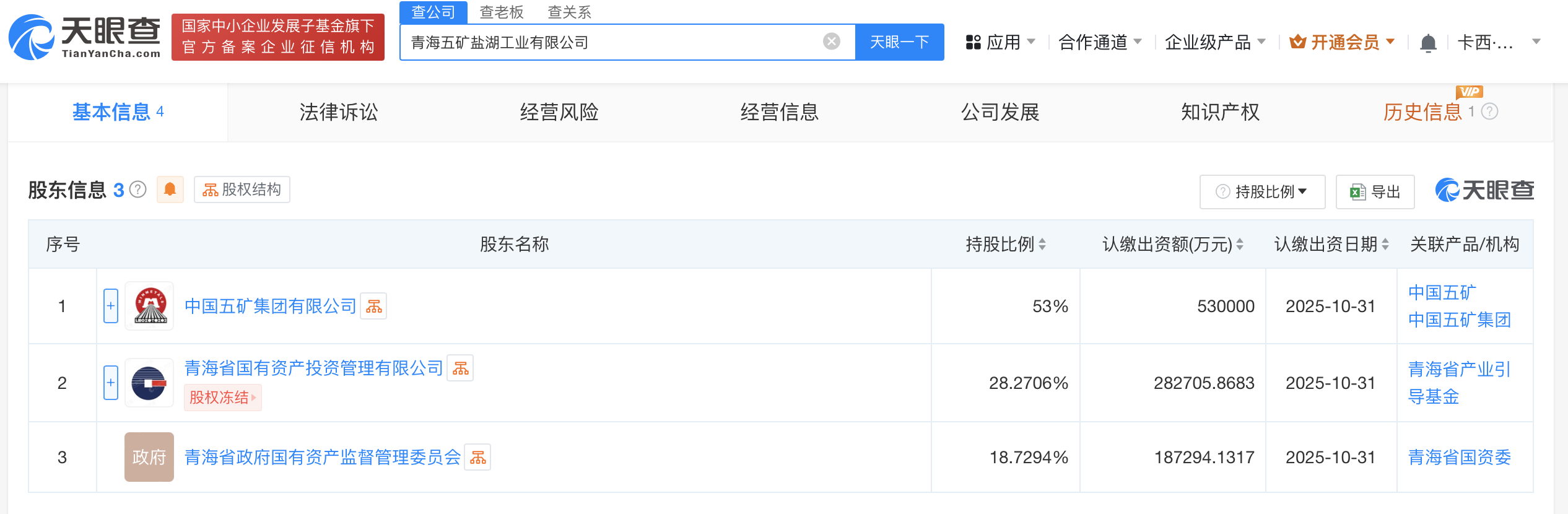 南方财经10月30日电,天眼查App显示,近日,青海五矿盐湖工业有限公司成立,法定代表人为王小榕,注册资本100亿人民币,经营范围含非煤矿山矿产资源开采、矿产资源勘查、肥料生产等。股东信息显示,该公司由中国五矿集团有限公司、青海省国有资产投资管理有限公司、青海省政府国有资产监督管理委员会分别持股53%、28.3%、18.7%。据中国能源报此前报道,中国五矿及所属子企业与青海省国资委等签署协议,共同组建盐湖工业公司,通过本次资源整合,将加速实现国内盐湖资源的集中管理和优化配置,未来有望进一步加强我国钾、锂资源的保障能力。