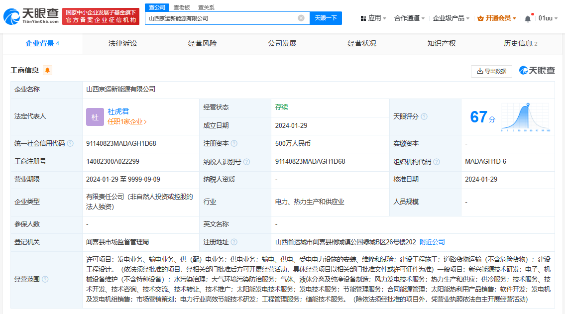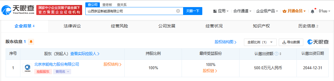 京能电力在山西成立新能源公司 注册资本500万