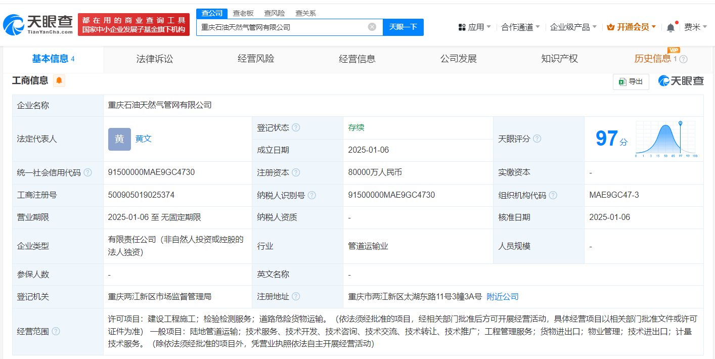 国家管网集团在重庆成立石油天然气管网公司 注册资本8亿
